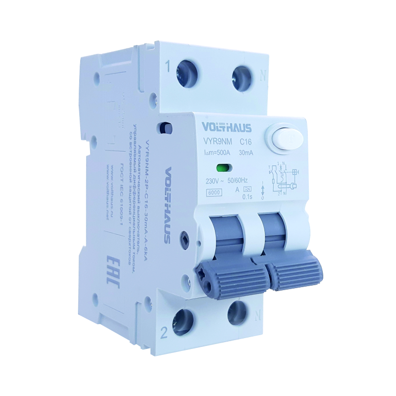 Дифференциальный автомат VOLTHAUS VYR9N электромеханического типа (М) 1P+N 16А (С) 30mA тип A 6кА